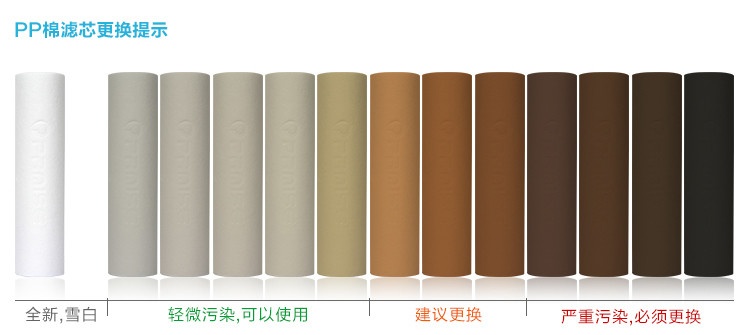 查看滤芯使用情况,对比上图的使用情况确认是否需要更换,活性炭滤芯一般和PP棉同时更换。